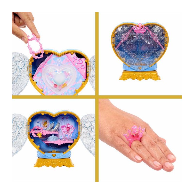 Cendrillon se cache avec des accessoires a l'intérieur d'un sceptre réhaussé d'un coeur ! Il suffit juste de déverrouiller le coeur pour les découvrir.