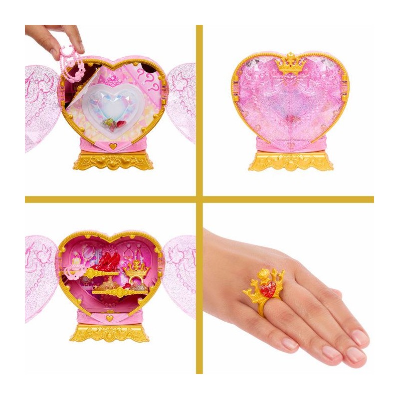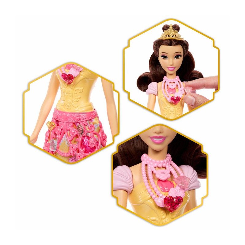 Belle se cache avec des accessoires a l'intérieur d'un sceptre réhaussé d'un coeur ! Il suffit juste de déverrouiller le coeur pour les découvrir.