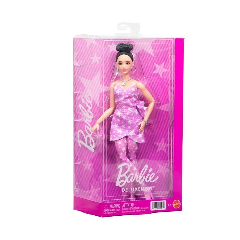 Découvrez la poupée Barbie Deluxe Style (EAN?0194735340071), une poupée de mode glamour qui allie style tendance et haute qualité pour offrir une expérience de jeu inspirante aux enfants et aux collectionneurs. Cette poupée Barbie Deluxe Style est habillée d'une robe en denim rose avec un imprimé étoile tendance et des détails fashion qui séduisent tous les amateurs de mode. Sa silhouette articulée et sa coiffure noire en chignon permettent de créer des poses variées, stimulant ainsi la créativité et l'imagination lors des jeux. Adaptée aux enfants des 4 ans, cette poupée est parfaite pour inventer des histoires, jouer a la styliste ou compléter une collection de poupées Barbie. Son look chic et son outfit denim en font un choix idéal pour élargir l'univers de jeu des petits. a la recherche d'une idée cadeau mode pour un anniversaire, Noël ou toute autre occasion spéciale?? Cette Barbie Deluxe Style, grâce a sa tenue élégante et son design soigné, est une option attrayante qui saura plaire aux enfants et aux passionnés de poupées Barbie.