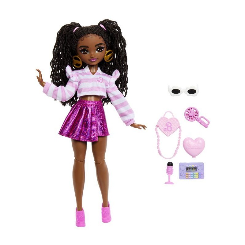 Découvrez la poupée Barbie Dream Besties «?Brooklyn?» (EAN?0194735354252), une poupée fashion captivante de la série Barbie Dream Besties qui encourage les enfants a explorer leurs talents créatifs et a imaginer des aventures uniques. Dotée d'une personnalité inspirante et d'un style moderne, elle est accompagnée de plusieurs accessoires thématiques pour enrichir les jeux de rôle. La poupée Barbie «?Brooklyn?» est habillée d'une tenue tendance et possede une chevelure longue et tressée idéale pour etre coiffée selon les envies. Les nombreux accessoires inclus — comme un poste radio, un sac a main, un téléphone et d'autres pieces amusantes — stimulent l'imagination et multiplient les possibilités de jeu. Adaptée aux enfants des 4?ans, cette poupée mode favorise le développement de la créativité, de l'expression personnelle et des interactions sociales a travers des jeux narratifs prolongés. Elle constitue un excellent ajout a toute collection de poupées Barbie. Choisir cette Barbie Dream Besties comme idée cadeau pour un anniversaire, Noël ou toute autre occasion spéciale permet d'offrir un jouet riche en possibilités de jeu, parfait pour les jeunes amateurs de poupées.
