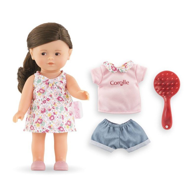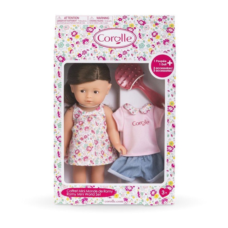 Un univers miniature a explorer?! Coffret avec poupée Mini Corolline Romy de 20 cm, brosse et tenue de rechange. Cheveux bruns a coiffer, corps vinyle, yeux peints et parfum vanille. Des 3 ans pour des jeux créatifs et tendres.