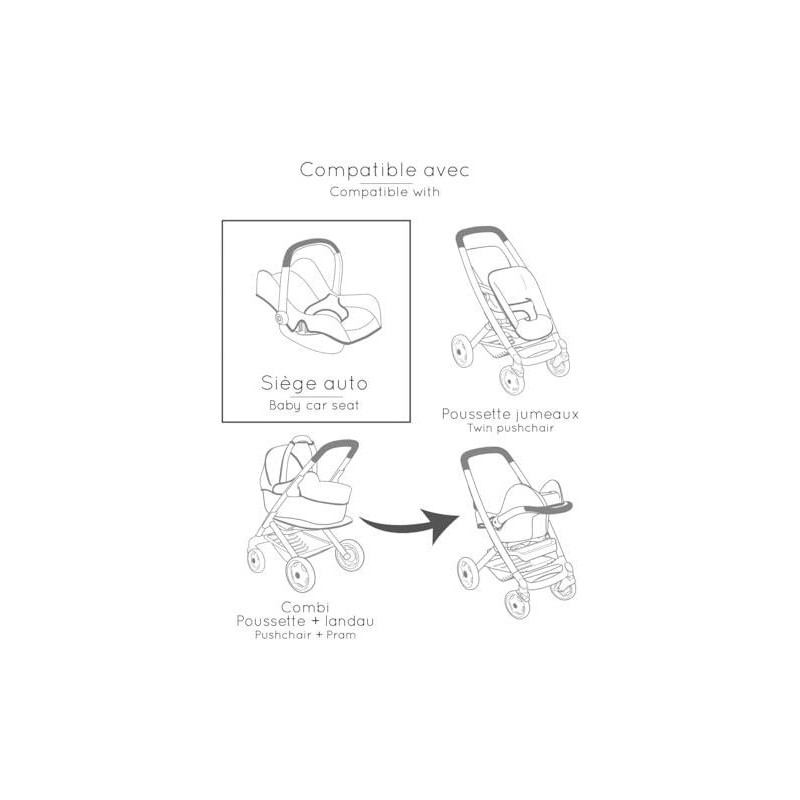 SMOBY - Maxi cosi - Siege + Chaise haute beige - 3 en 1 - Pour poupon - Des 3 ans