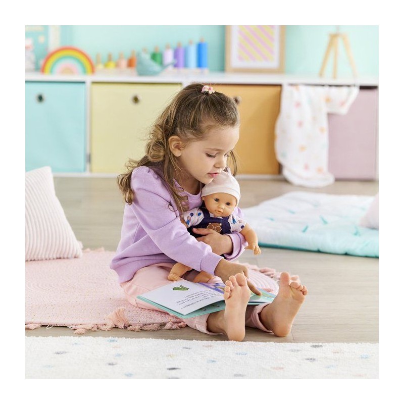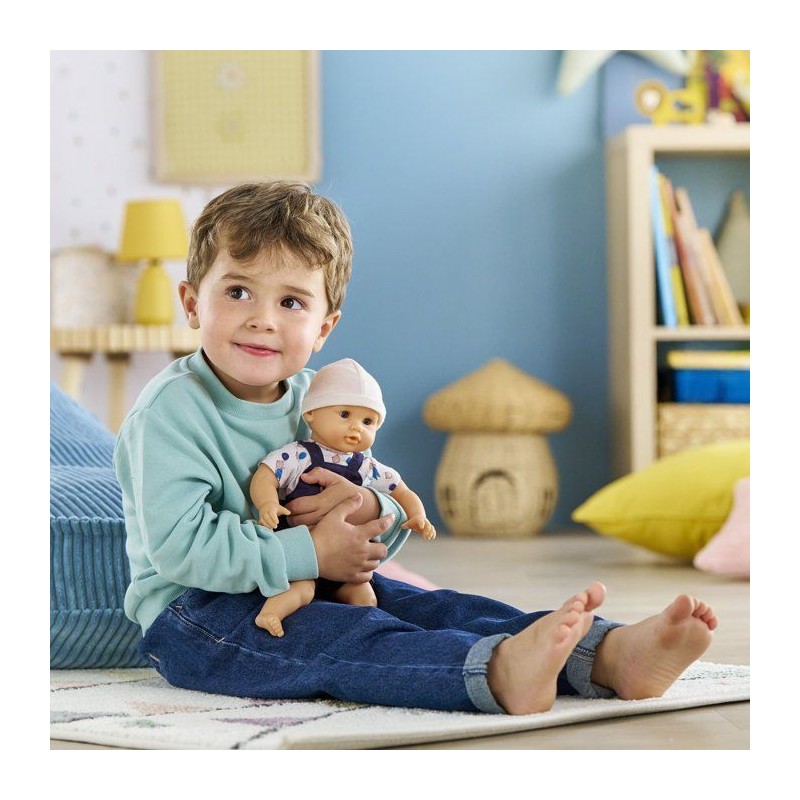 Bébé Calin Maël est le poupon parfait pour les câlins?! Avec son corps souple et ses yeux dormeurs, il prend les attitudes d'un vrai bébé. Sa tenue ourson ajoute une touche adorable. Légerement parfumé a la vanille, il mesure 30 cm et accompagne les jeux d'imitation des 18 mois.