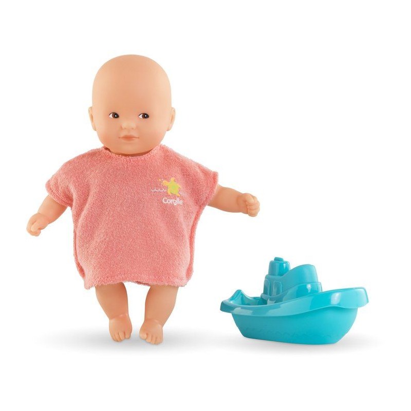Un coffret complet pour des moments de jeu dans l'eau?! Il contient un poupon Mini Bain de 20 cm au corps souple, une cape de bain et un jouet bateau. Idéal pour le bain ou la piscine, ce poupon aux yeux peints et a la senteur de vanille stimule l'imagination et la motricité. a offrir des 18 mois pour des instants ludiques et tendres.