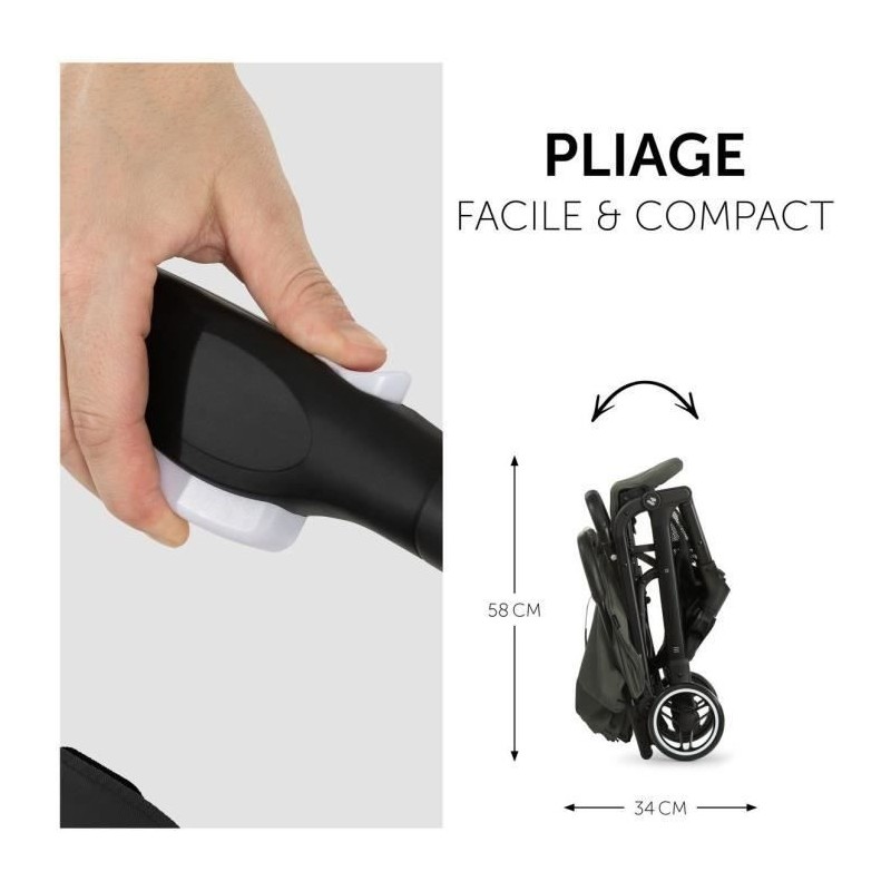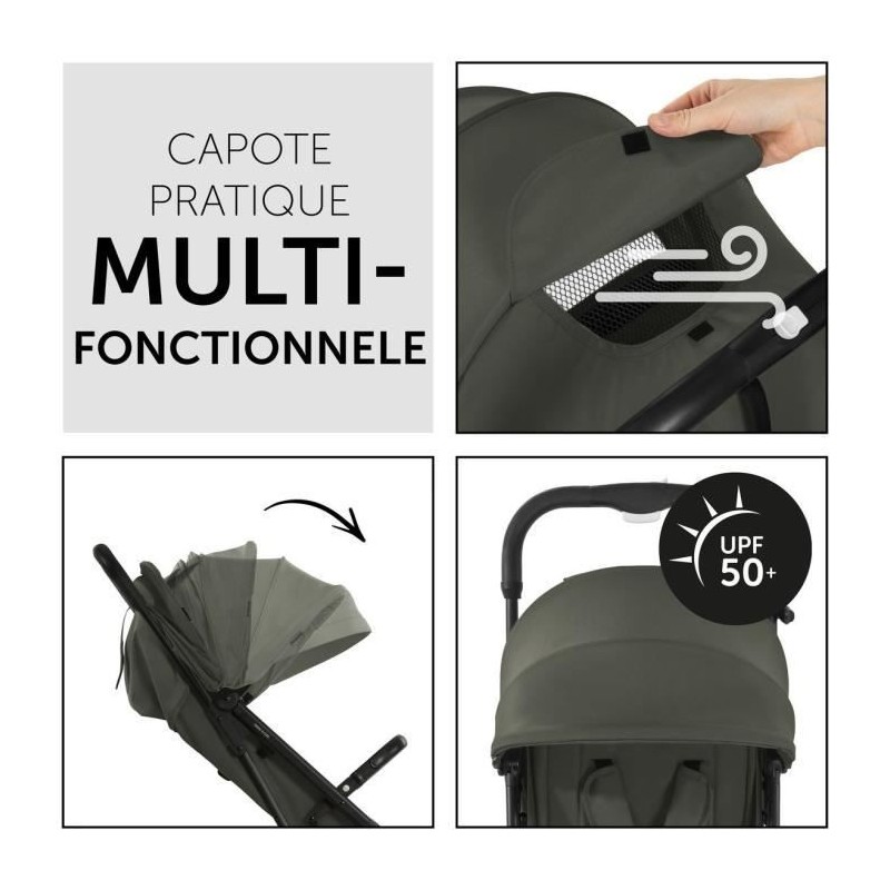 Parfaite pour les escapades en famille, cette poussette compacte en version Olive allie légereté et confort. Elle se plie d'une seule main et se porte facilement grâce a sa sangle d'épaule. Son siege spacieux s'adapte a bébé des la naissance jusqu'a 22 kg, avec une position allongée idéale pour les siestes. Le canopy UPF 50+ protege du soleil, tandis que la fenetre en maille assure une bonne aération. Maniable et stable avec ses roues EVA pivotantes, elle est aussi facile a entretenir grâce a sa housse lavable. Un vrai allié du quotidien, pratique et stylé.