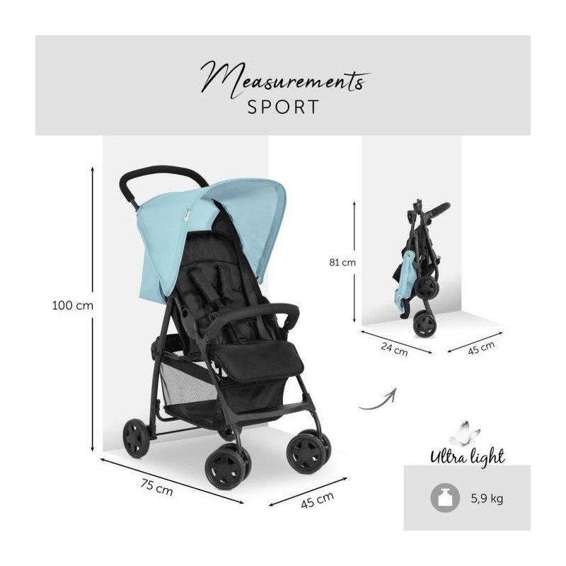 HAUCK - Poussette canne - SPORT - Pliable & inclinable - Capote Pare-Soleil - 4 roues - Noir / Bleu