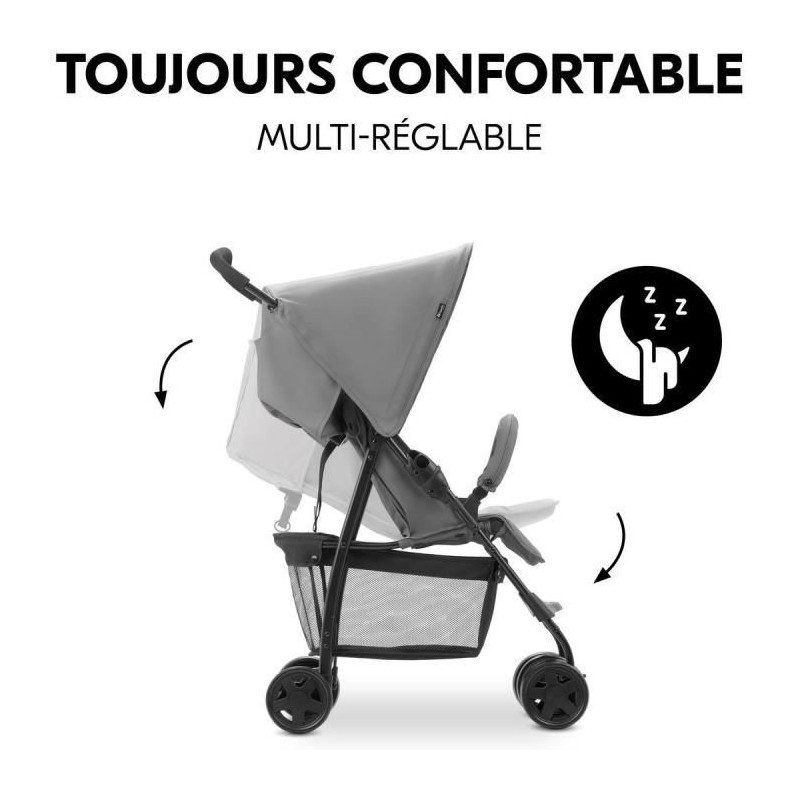 HAUCK - Poussette canne - SPORT - Pliable & inclinable - Capote Pare-Soleil - 4 roues - Gris