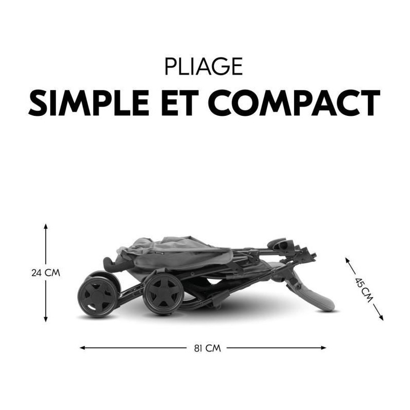 Légere, maniable et pleine de confort, cette poussette canne simplifie toutes vos sorties. Elle se plie en un clin d'oeil et se glisse facilement dans le coffre ou le placard. Le dossier inclinable et le repose-pieds réglable offrent a bébé un espace douillet pour se reposer. Les roues pivotantes assurent une conduite fluide, meme en ville. Le harnais 5 points et l'arceau de protection garantissent la sécurité, tandis que le panier XL accueille tout le nécessaire. Un vrai allié du quotidien, des la naissance jusqu'a 15 kg.