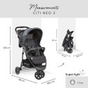 Avec ses 3 roues et son poids plume, la poussette Citi Neo II en coloris Caviar/Stone est idéale pour les escapades urbaines. Son châssis en acier et ses roues increvables assurent une conduite fluide. Bébé profite d'un confort douillet grâce au dossier inclinable, au repose-pieds réglable et a la fenetre de surveillance. Le grand panier et la tablette avec porte-gobelet permettent d'emporter tout le nécessaire. Facile a plier d'une seule main, elle vous suit partout, des la naissance jusqu'a 22 kg.