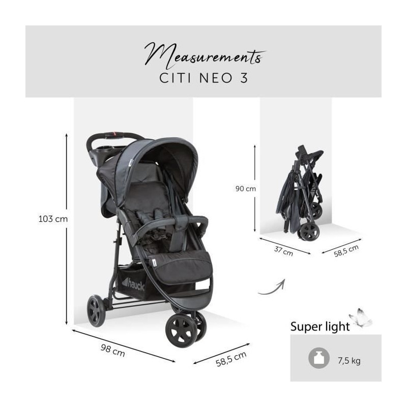 HAUCK - Poussette compacte - CITI NEO II - 3 roues - Caviar / Stone