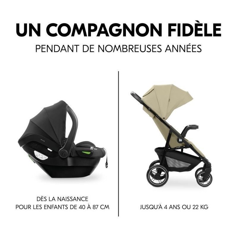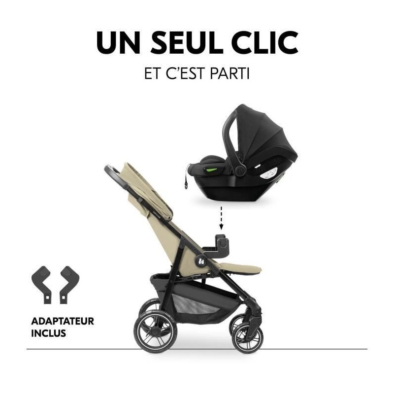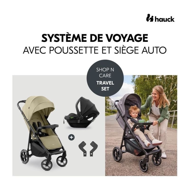 HAUK - Ensemble de voyage 2-en-1 Shop N Care - Poussette + Siege auto & adaptateurs - 4 roues - Olive