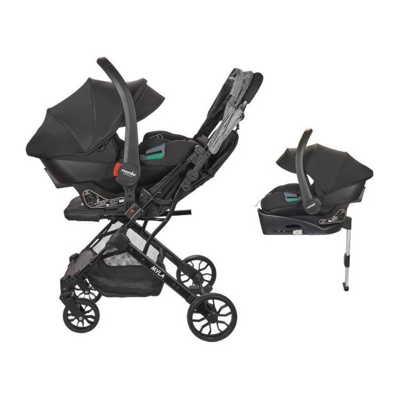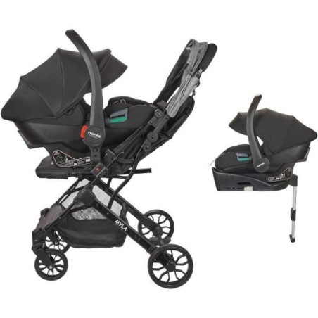 NANIA - Poussette combinée 2-en-1 avec siege auto Rimini + base isofix - MYLA - 4 roues - Noir