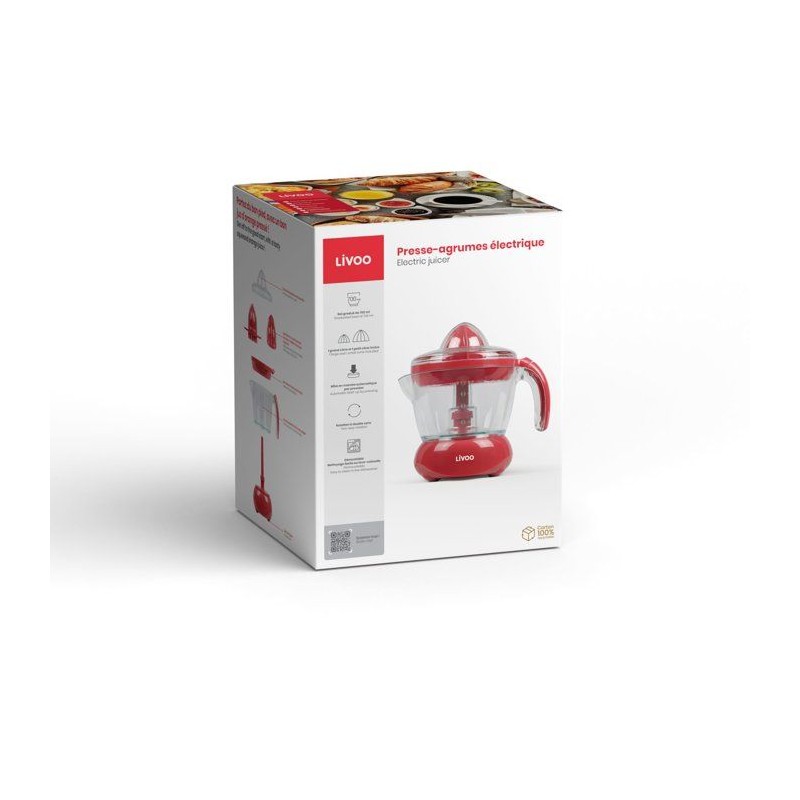 Presse-agrumes électrique - LIVOO - DOD131RC - 25 W - 1 grand cône et 1 petit cône - 700 ml - Rouge