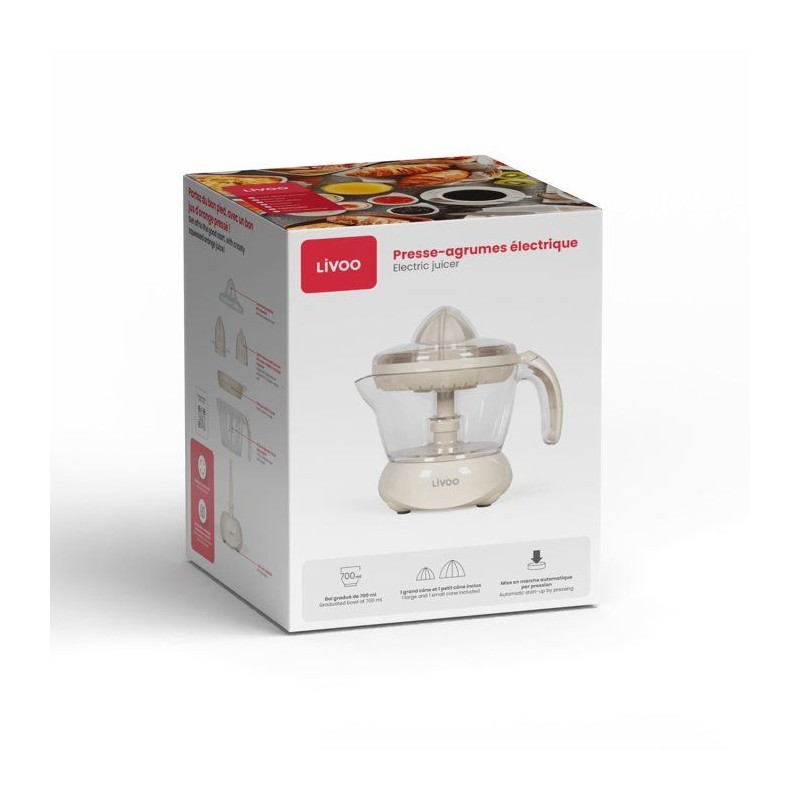 Presse-agrumes électrique - LIVOO - DOD131C - 25 W - 1 grand cône et 1 petit cône - 700 ml - Blanc cassé