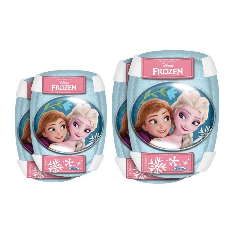 Un kit confortable pour débuter : coudieres + genouilleres Reine des Neiges. Taille unique, sangles élastiques et scratch pour un maintien sûr. Doux a l'intérieur, résistant a l'extérieur : les genoux et coudes vous disent merci !