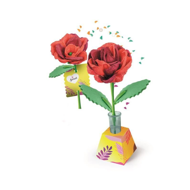 - Un coffret créatif original qui permet d'assembler 2 fleurs et de les personnaliser. - Un coffret riche contenant : tiges, pétales a colorer, corolles de différentes matieres a composer et le porte-fleur a assembler et décorer. - Le coffret inclut un carton porte-fleur a personnaliser pour offrir sa création.