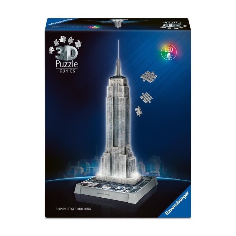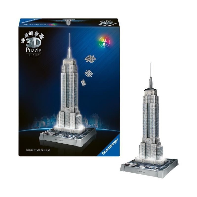 Une fois assemblée, cette superbe reproduction de l'Empire State Building en 3D s'illumine grâce a un éclairage intégré!