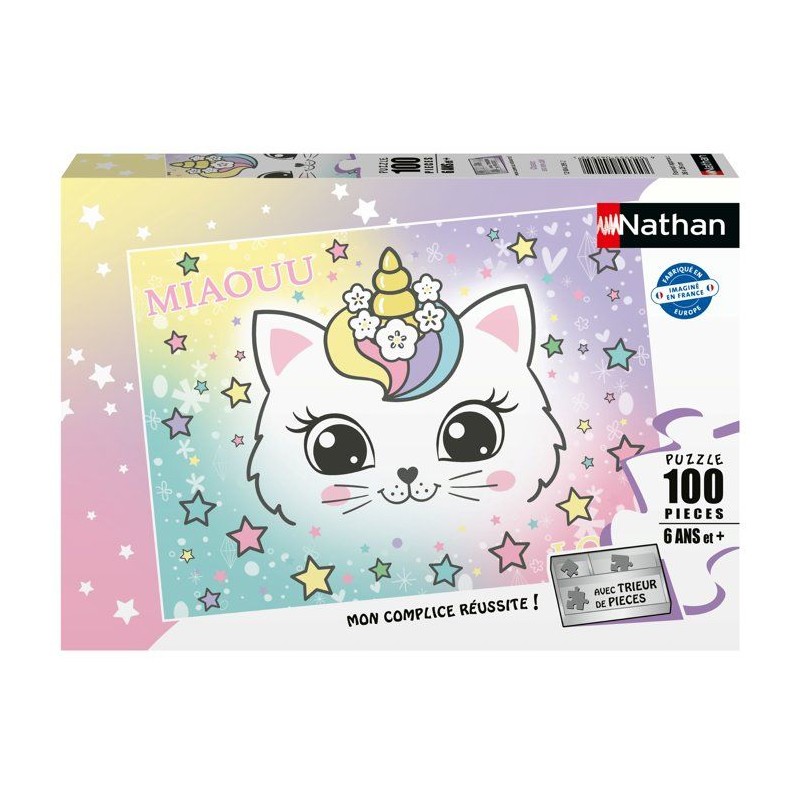 Nathan - Puzzle enfants 100 pieces - Chaton arc-en-ciel - des 6 ans -De qualité supérieure - Carton épais et résistant - 120