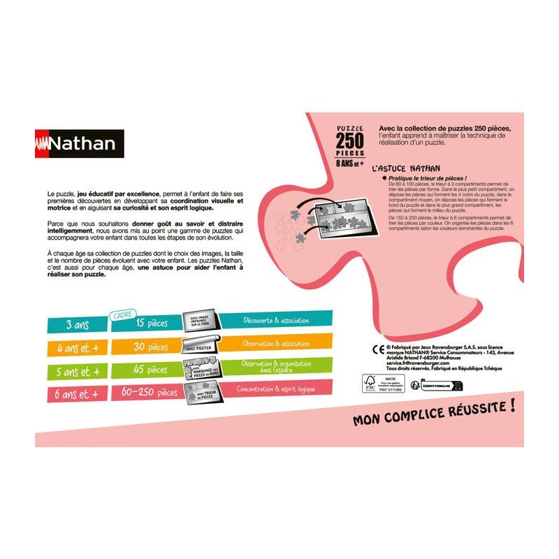 Avec la collection des puzzles 60 a 250 pieces, l'enfant apprend a maîtriser la technique de réalisation d'un puzzle. Une façon ludique de développer sa concentration et son esprit logique.