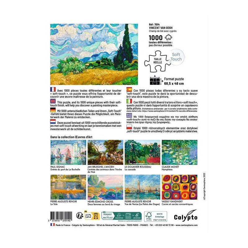 Puzzle - SENTOSPHERE - Calypto - 1000 pieces -Champ de blé avec cypres - Vincent Van Gogh - Des 9 ans