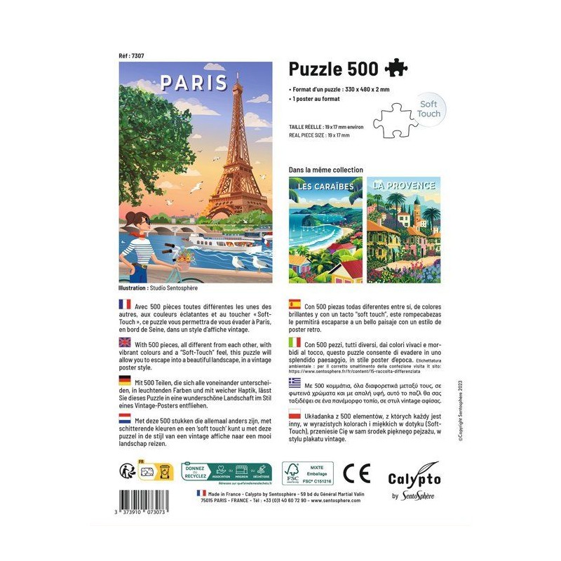 Puzzle - SENTOSPHERE - Calypto - 500 pieces - Paris - Toucher soyeux - Des 8 ans