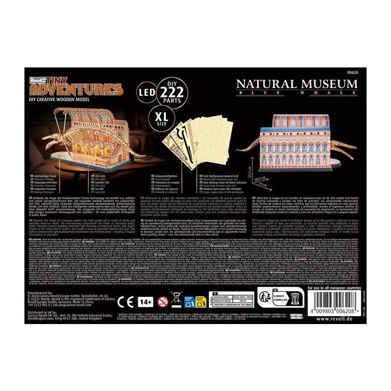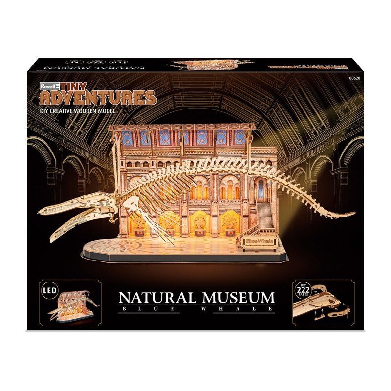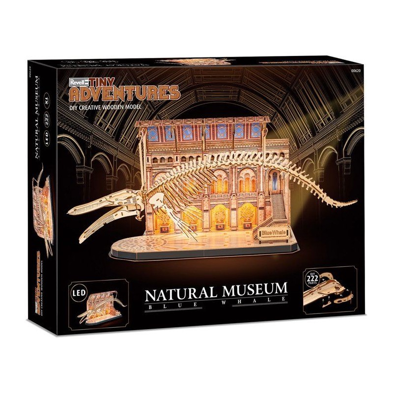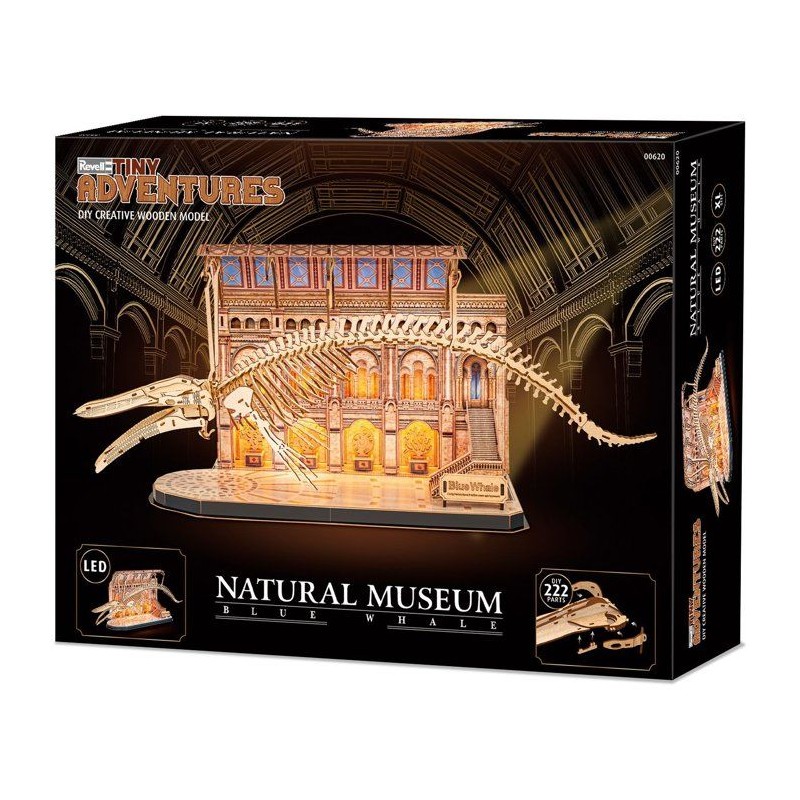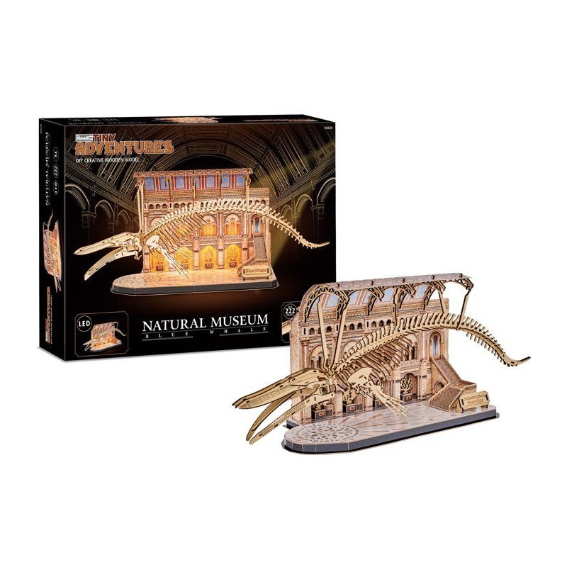 Puzzle 3D en bois - REVELL - Tiny Adventures - Natural Museum - Baleine Bleue - LED