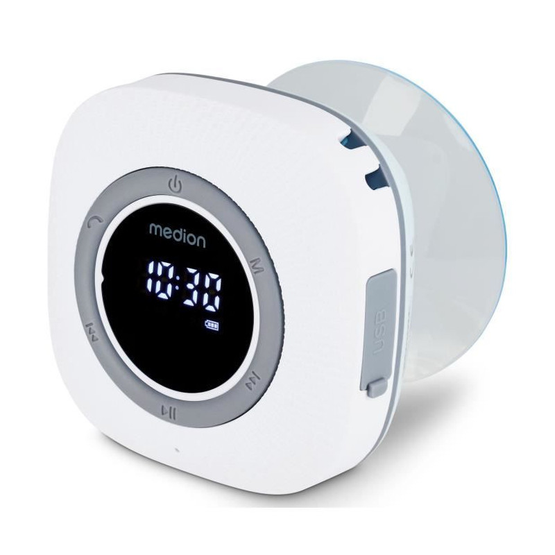 Radio de Douche - MEDION - FM - Bluetooth - IPX6 - Ventouse de fixation - Blanc