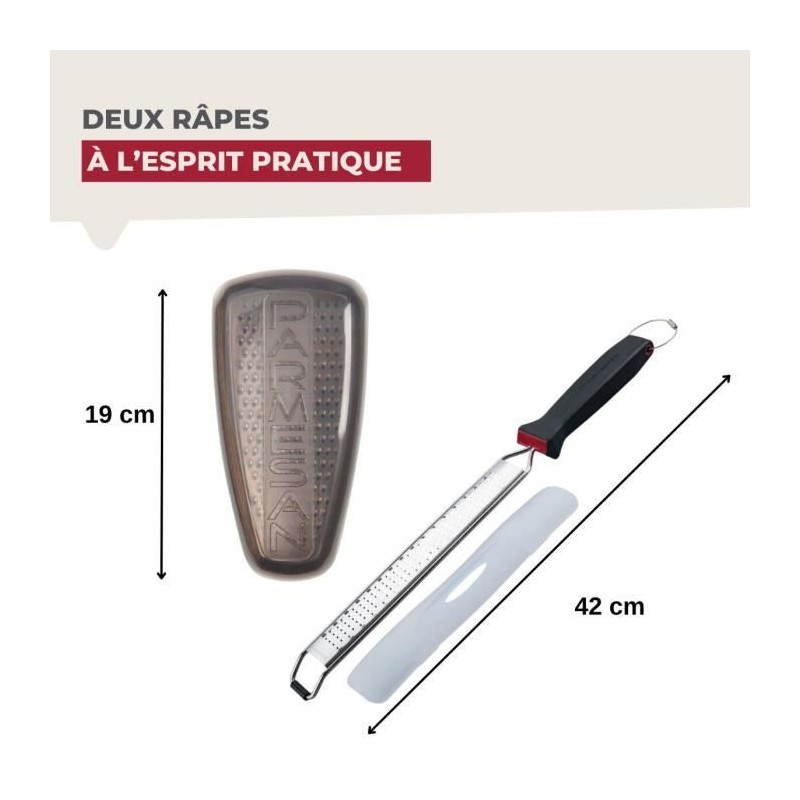 Duo Râpe a zeste et Râpe a parmesan - FACKELMANN - Acier inoxydable - 42 et 19 cm
