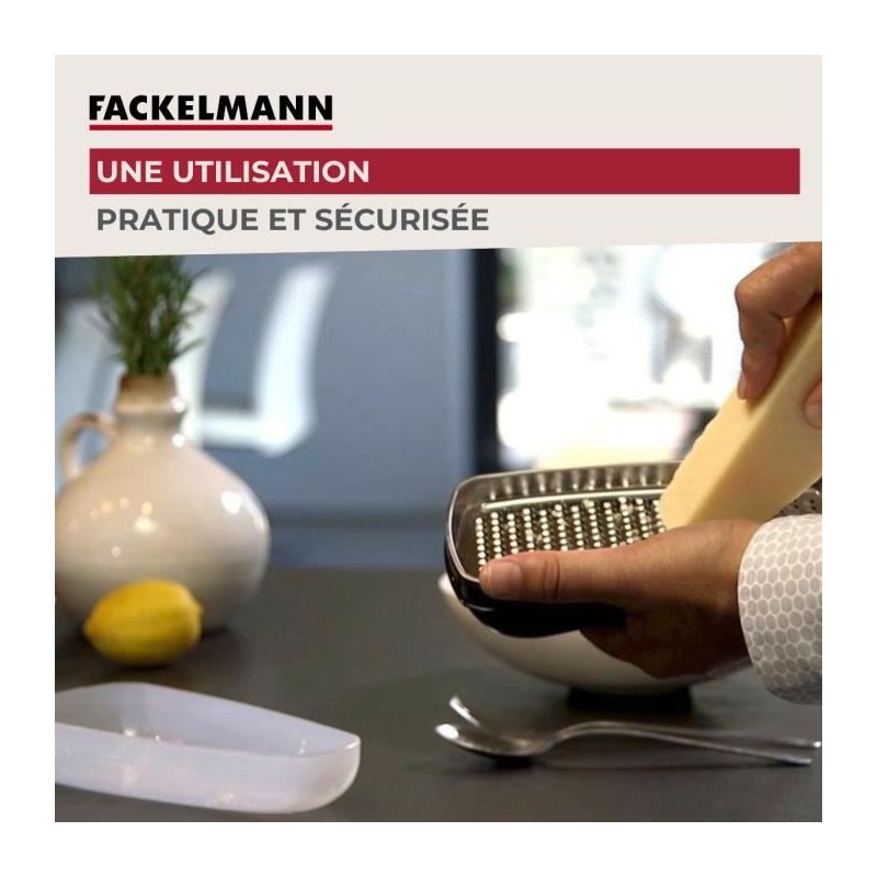 Fackelmann réunit dans ce duo une râpe a zeste professionnelle a gros grains avec protection en plastique, et une râpe a parmesan avec boîte de rangement, pour vous accompagner avec efficacité en cuisine et en pâtisserie. LE PETIT + : Les gros trous du zesteur forment des zestes de citron ou d'orange a la saveur intense il dispose d'un anneau de rangement la râpe a fromage est dotée d'une boîte qui permet de conserver facilement sa fraîcheur au fromage râpé. COMPOSITION : Ces râpes sont fabriquées en acier inoxydable, solide et durable la poignée de la râpe a agrumes est en plastique robuste et facilite une prise en main sécurisée sa protection ainsi que la boîte a fromage râpé sont en plastique. DIMENSIONS : La longueur totale du zeste agrume est de 42 cm la boîte a fromage mesure 19 cm de long et peut contenir un morceau de entier parmesan elles se lavent facilement a la main pas de lave-vaisselle pour le zesteur agrumes. UTILISATION : Indispensable aux pâtissiers comme pour certains plats salés ou cocktails, le zesteur citron est de qualité professionnelle quant au parmesan râpé c'est un délice dans les pâtes, la sauce carbonara, la salade César, le risotto etc Avec ce duo, c'est vous les Rapetou ! Rien de plus savoureux que les ingrédients râpés minute a la main, comme un chef. Le râpe zeste a trous épais vous garantit de beaux zestes d'agrumes en ruban. Il peut râper d'autres ingrédients comme le parmesan si quand le voulez en filaments. La rape a fromage est doublement pratique : sa boîte cale la râpe pendant la découpe et cette meme boîte a fromage vous permet de ranger hermétiquement votre morceau de parmesan, votre gruyere ou votre comté râpé, s'il vous en reste. Elle les préservera des odeurs du frigo, et leur gardera toute leur fraîcheur. Que diriez-vous d'une recette qui combine les deux, comme un risotto citron parmesan ?