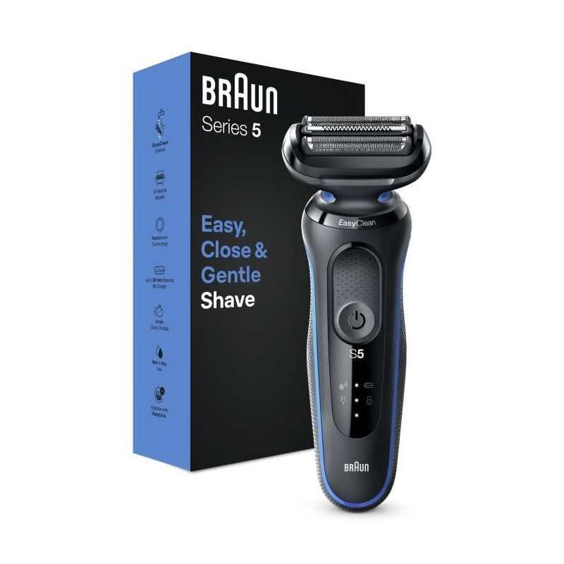 Rasoir électrique - BRAUN - SERIES 5 51-B1000s - 50 min d'autonomie - Noir/Bleu - Tete lavable