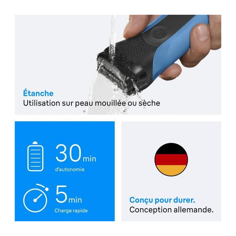 Rasoir électrique BRAUN Series 3 - Bleu et noir - Autonomie 30 minutes - Charge rapide 5 minutes