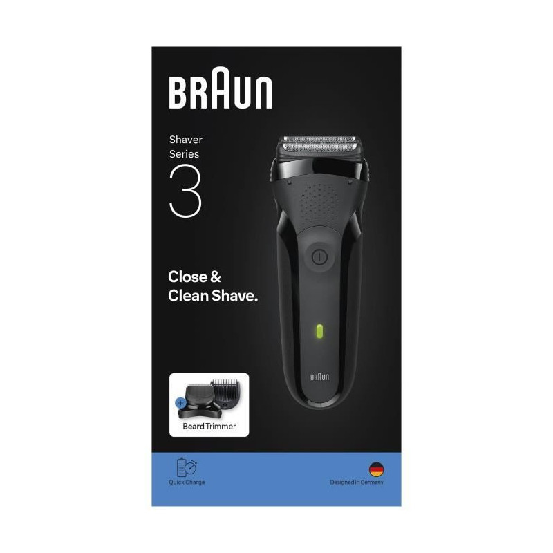 Rasoir électrique BRAUN Series 3 - Noir - Autonomie 30 minutes - Charge rapide 5 minutes
