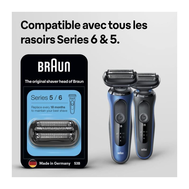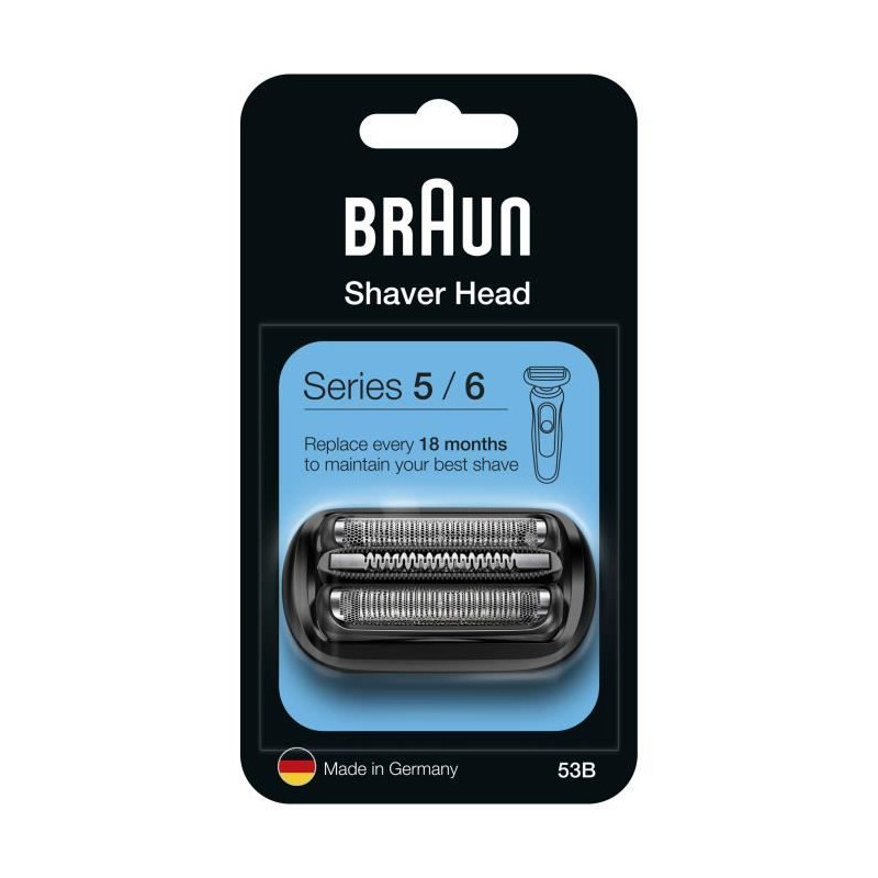 La tete de rasoir Braun 53B est l'accessoire indispensable pour maintenir les performances de votre rasoir Series 5 et 6. Originale et de haute qualité, elle garantit un rasage de pres et confortable. Remplacez-la régulierement pour un rasage optimal et une peau douce. Un investissement sûr pour un rasage toujours parfait !