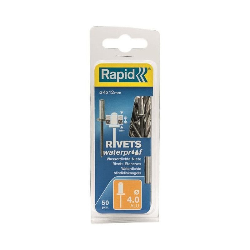Rivets Etanches Ø4 x 12mm en aluminium - Blister de 50 pieces + foret inclus - Fabriqués en aluminium de haute qualité - Idéal pour une utilisation dans des endroits humides - La tete du rivet est fabriquée en une seule piece pour éviter des fuites entre les deux parties fixées