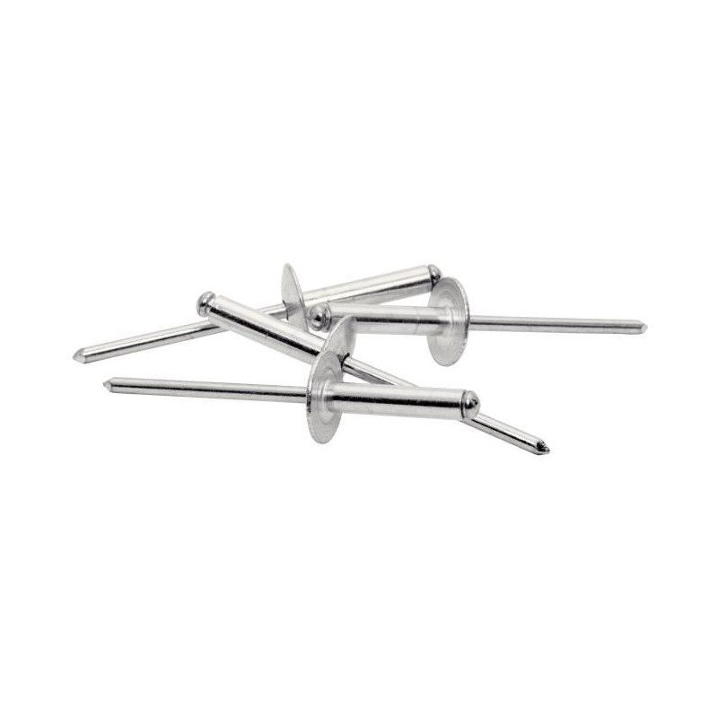 RAPID Rivets XL Ø4 x 18 mm. Blister de 40 pcs. Rivets en aluminium haute performance possédant une tete plus large, plus plate. Cette caractéristique augmente la résistance a l'arrachement et offre un meilleur maintien des matériaux plus souples.