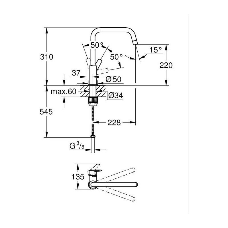 Un bec haut idéal pour les tâches de cuisine. Zone de rotation 150° avec un bec orientable pratique pour une manipulation facile. Des systemes d'acheminement d'eau séparés pour une eau potable sans plomb ou nickel. Une technologie d'ajustement constante de la température et du débit de l'eau. Facile a nettoyer grâce au revetement a finition chromée GROHE StarLight®.