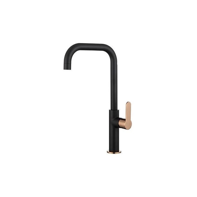 Mitigeur évier - EDOUARD ROUSSEAU - Laobane - Embase Ø 50 mm - Tube mobile - Noir / Rose Gold