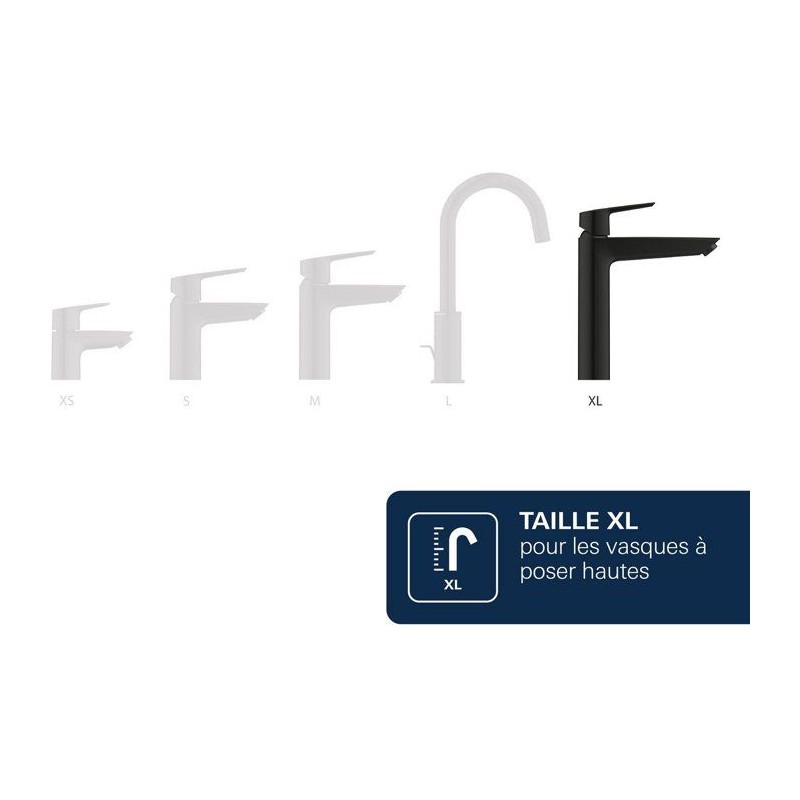 Mitigeur de lavabo - GROHE DICE - Taille XL - Corps lisse sans vidage - Noir mat