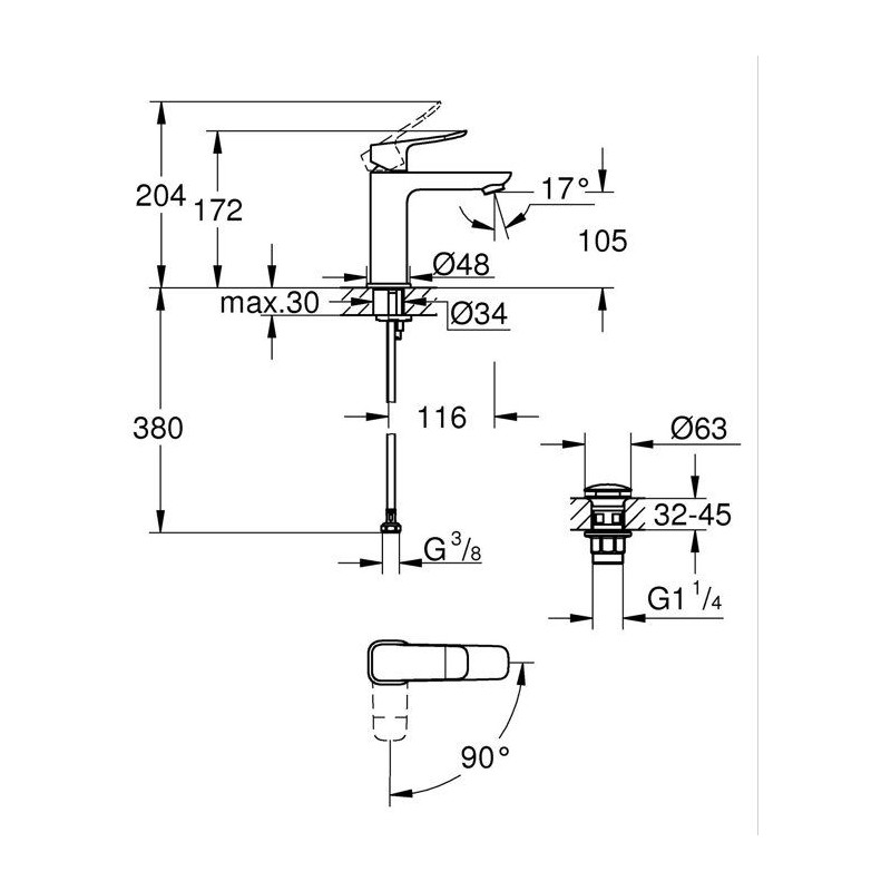 Mitigeur de lavabo - GROHE DICE - Taille M - Cartouche Ch3 & clic-clac - Noir mat