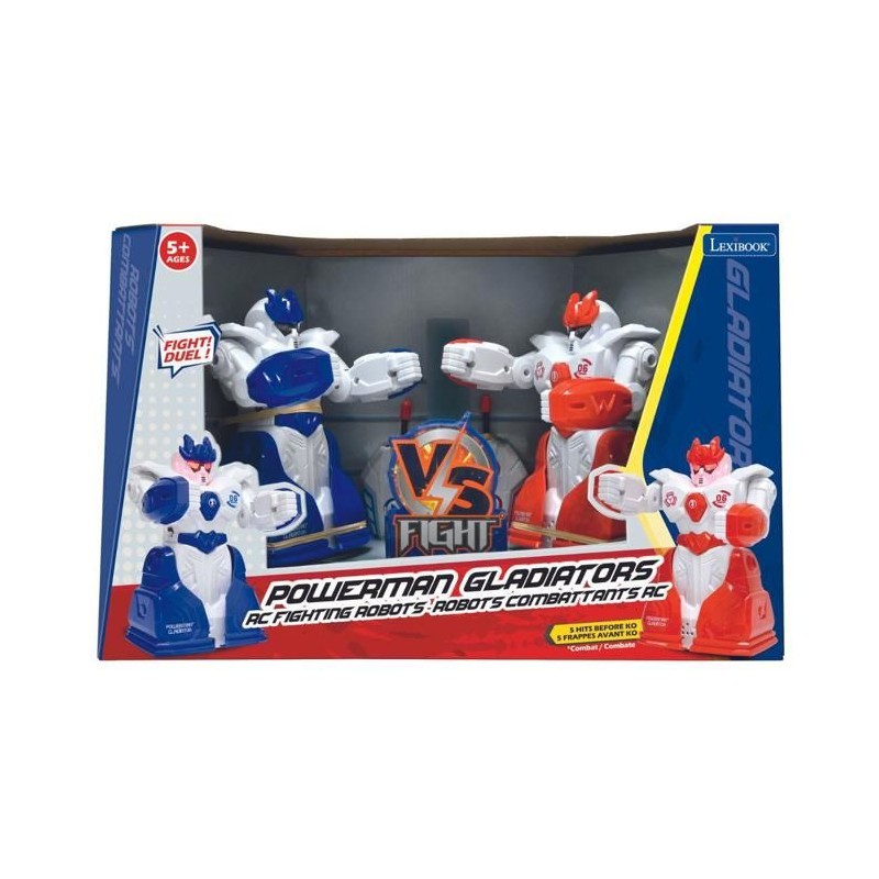 Rentre dans l'arene avec les POWERMAN® GLADIATOR ! Contrôle ton robot avec la télécommande dans toutes les directions. Ses bras articulés et ses effets sonores rendent chaque combat intense. Évite le KO avec 5 vies et touche 5 fois le bouton de ton adversaire pour gagner ! Idéal pour les enfants a partir de 5 ans.