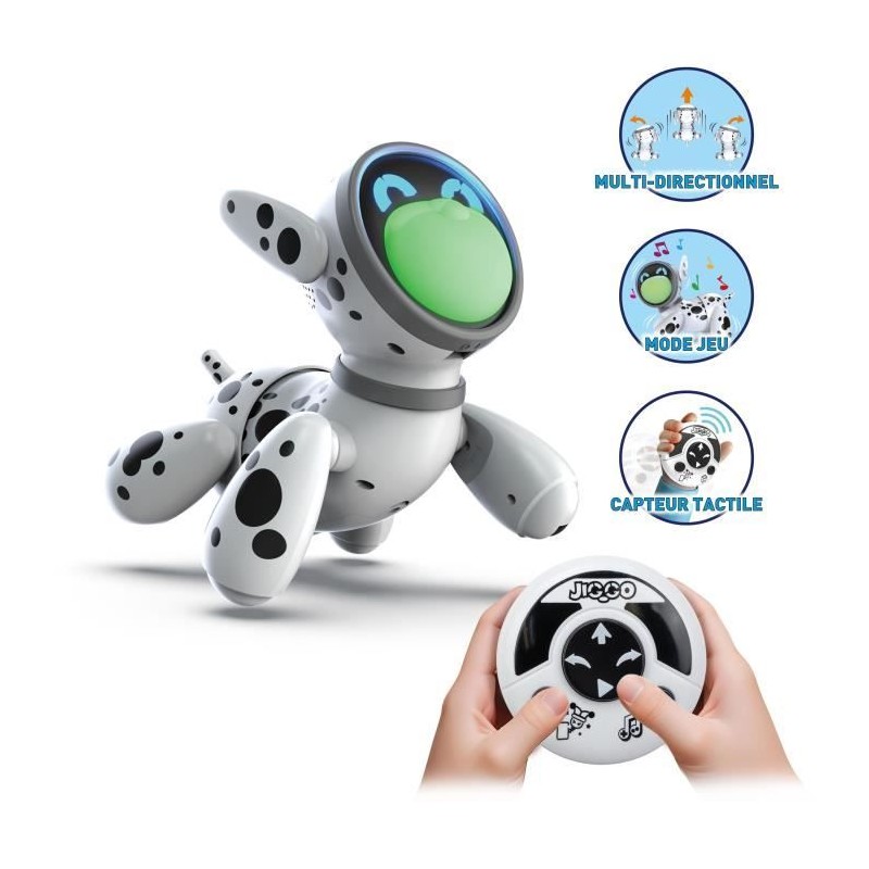 Découvrez Jiggo, le chien robot interactif de Silverlit ! Avec son nez qui change de couleur, il exprime ses émotions et réagit aux commandes. Un compagnon de jeu idéal pour les enfants a partir de 5 ans, promettant des heures de rires et d'interactions en extérieur.