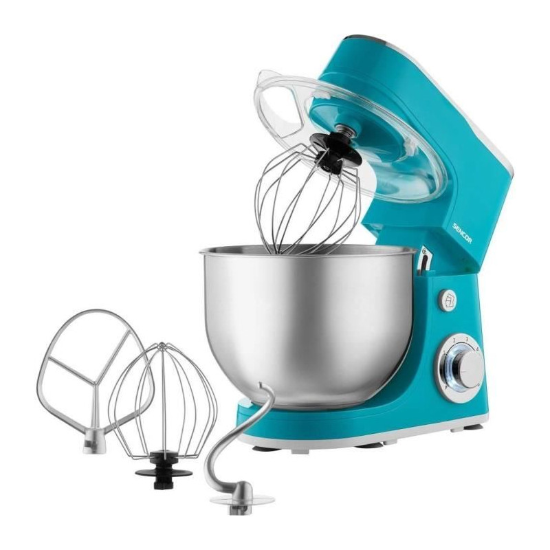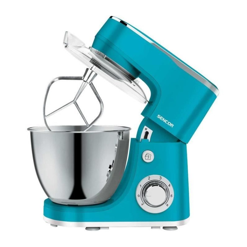 Le robot pâtissier Sencor STM 3637TQ est un appareil multifonction puissant de 1300 W. Avec son grand bol en acier inoxydable de 5,5 L, il est parfait pour pétrir, fouetter et mélanger. Il offre 6 vitesses et une fonction PULSE, idéal pour toutes vos préparations culinaires.