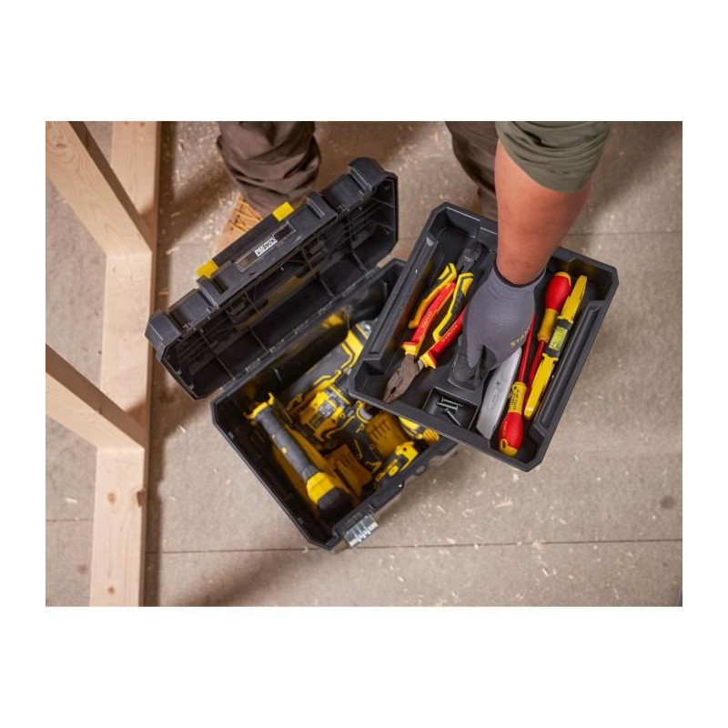 Ce module a roulettes STANLEY Tstak-Fatmax est conçu en polypropylene haute résistance. Il offre une charge maximale de 100 kg et est équipé de 4 roues pivotantes a 360°, dont 2 avec frein pour plus de sécurité. Compact et modulable, il facilite le transport et s'adapte facilement a d'autres modules.