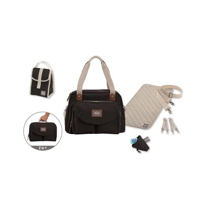 BEABA, Sac a langer Genéve II, Modulable, Grande contenance, Rangements multiples, Pochette avant amovible, Noir