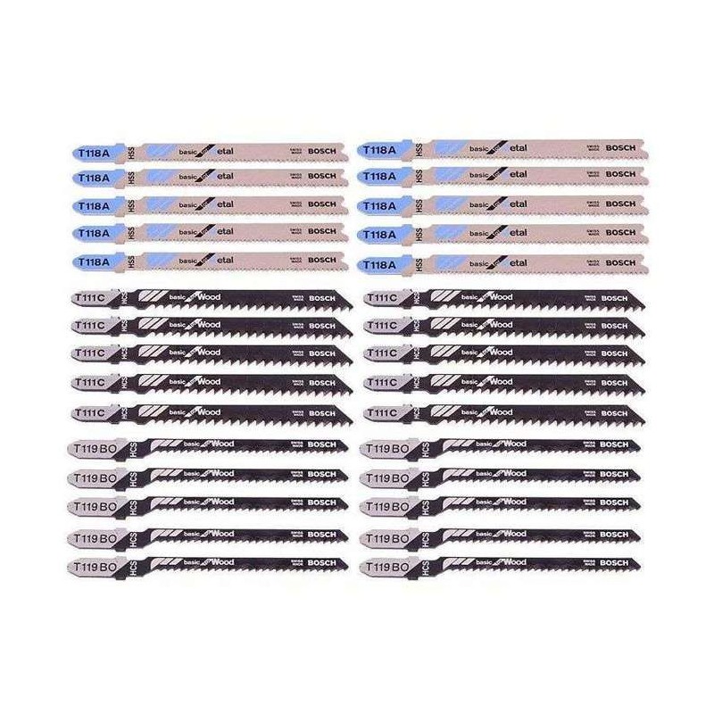 Kit de lames de scie sauteuse - BOSCH - 2607010903 - 30 lames - Bois tendre et métal - Coups courbes et droits
