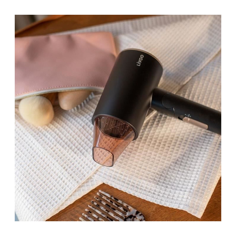 Seche-cheveux ionique - LIVOO - DOS173 - 1600 W - 3 températures - Pliable - Concentrateur d'air - Noir / Rose