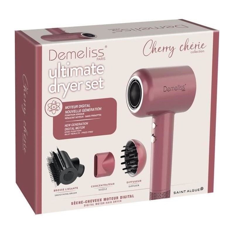 Seche-cheveux - DEMELISS - ULTIMATE DRYER SET - Diffuseur magnétique - 1600 W - Cherry Chérie