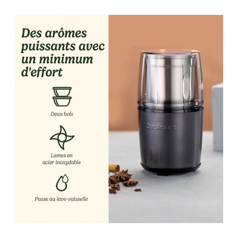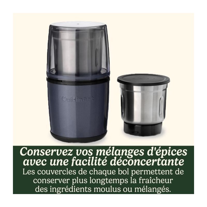 Moulin a épices - CUISINART - Fonctionne par impulsion - 2 bols avec couvercle - Bleu nuit