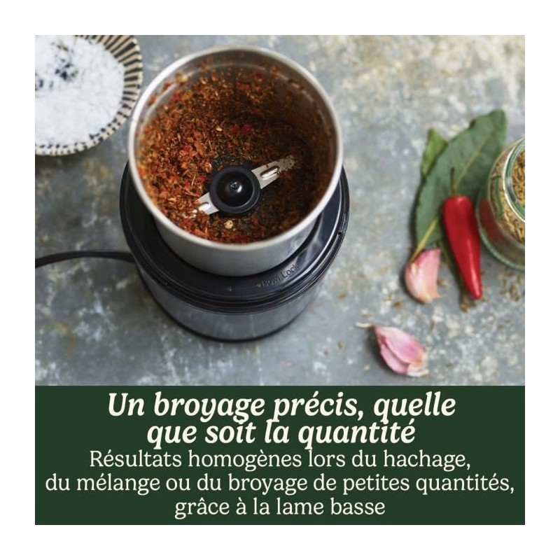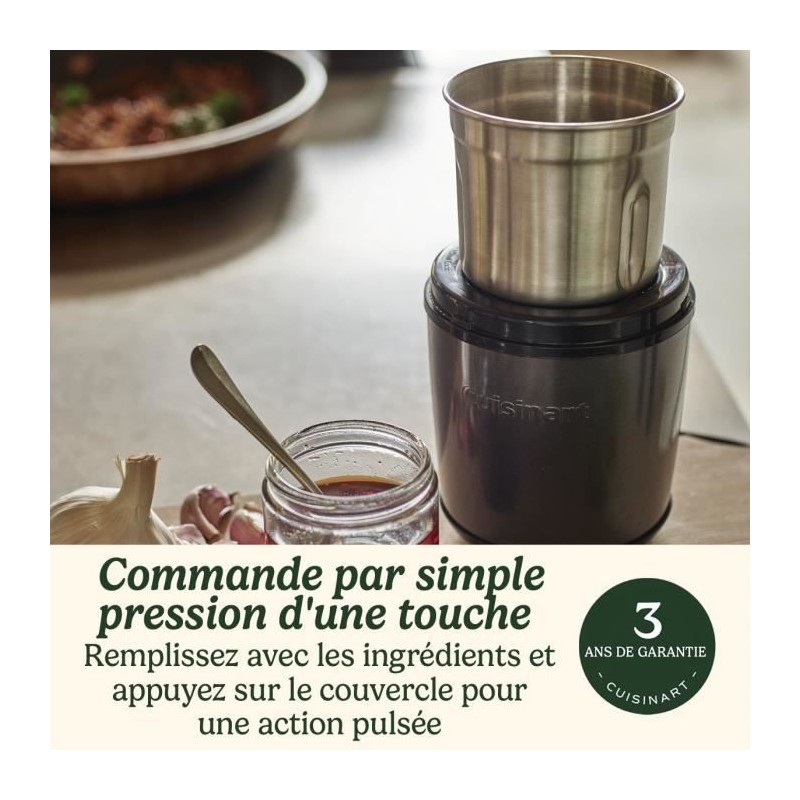 Découvrez le moulin a épices Cuisinart SG21BE, idéal pour moudre épices et noix. Avec ses 2 bols en acier inoxydable, il préserve la fraîcheur des ingrédients. Son fonctionnement par impulsion et ses lames ultra-tranchantes garantissent un résultat homogene, meme en petites quantités. Compact et facile a utiliser, il est parfait pour vos recettes maison.