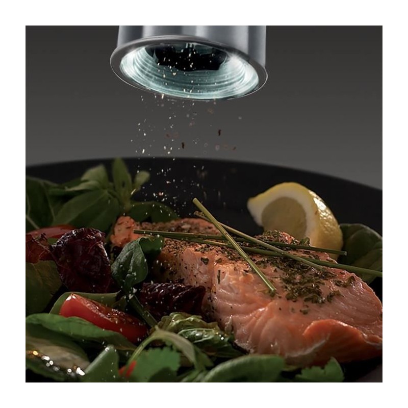 Apportez une touche d'élégance et de modernité a votre cuisine avec les moulins a sel et poivre électriques Russell Hobbs Stainless Steel Edition. Conçus en acier inoxydable au design contemporain, ces moulins automatiques s'integrent parfaitement a votre plan de travail ou a votre table. Grâce a leur fonctionnement a un bouton, assaisonnez vos plats d'un simple geste. Le systeme de broyage en céramique assure une mouture précise et durable, tandis que le réglage de la finesse vous permet de choisir entre une mouture fine ou plus grossiere, selon vos envies culinaires. Pratiques et intuitifs, ces moulins sont également équipés d'une lumiere LED a la base pour un dosage parfait, meme en faible luminosité. Ils peuvent moudre non seulement le sel et le poivre, mais aussi les herbes et épices de votre choix. Fonctionnant avec 4 piles AA (non incluses), ils sont prets a l'emploi où que vous soyez. Que vous soyez un chef passionné ou un amateur de cuisine, ces moulins Russell Hobbs allient style, performance et simplicité pour sublimer chaque repas.